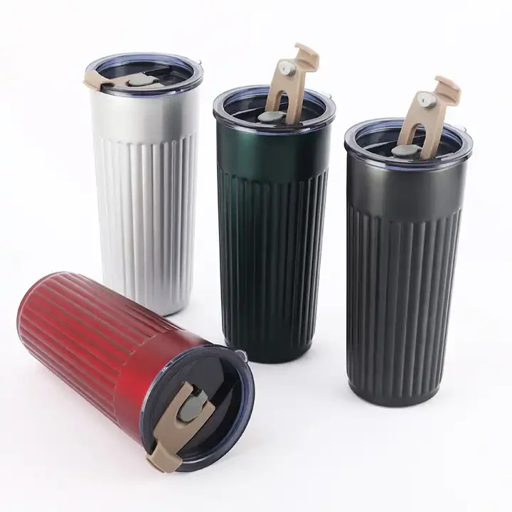 500ml Stripe Shape Double Wall Stainless Steel Vacuum Cup Thermal Travel Coffee Mug Insulated Beer Coffee Tumbler With lid