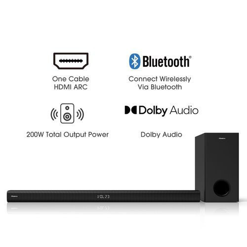 With HDMI OUT (ARC), the Hisense HS214 Sound bar can connect to your TVs through one single HDMI cable, and also connect wirelessly via Bluetooth, you can control both with one remote. You’ll be easily enjoying better TV sound in seconds.