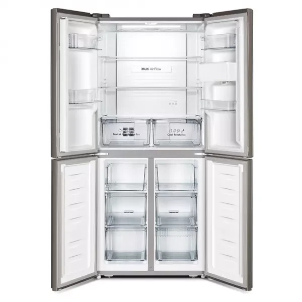 The back wall of the Hisense H520FI-WD 392L Multi-Door Refrigerator compartment is overlaid with stainless steel, which ensures even distribution of cool air from the inside out.