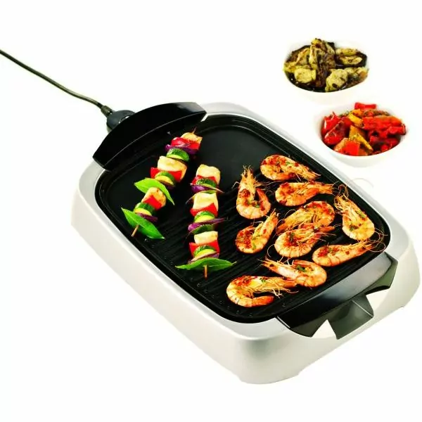 The Kenwood HG266 Health Grill is the perfect device to cook some yummy sandwiches and kebabs. This machine is made from metal and sports a silver color that looks quite stylish and sophisticated sitting atop your kitchen counter. This outdoor and indoor grill from Kenwood has a glass lid that allows you to see the contents within. Grill juicy steaks and whip up stir-fry with as little grease as possible. The Kenwood Health Grill comes with features that aid in eliminating fats and oil