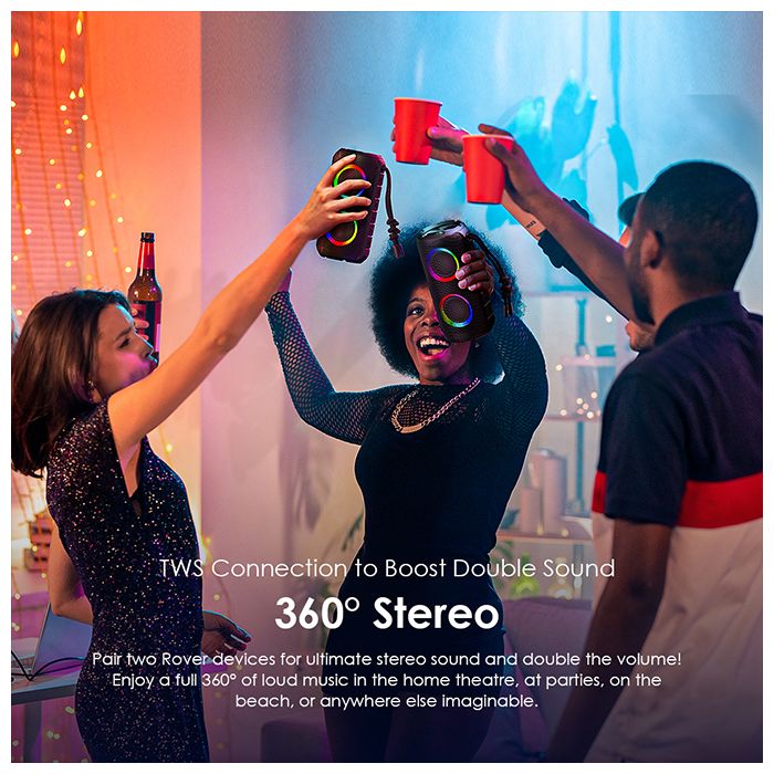 Pair two Rover devices for ultimate stereo sound and double the volume! Enjoy a full 360° of loud music in the home theatre, at parties, on the beach, in the park, or anywhere else imaginable. Let's make some noise!