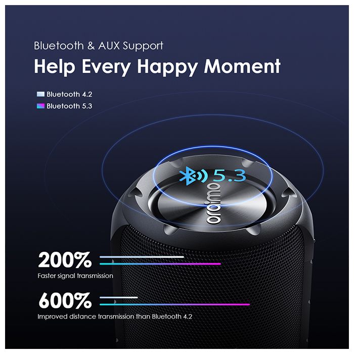 Faster transmission, more stable connection, and stronger compatibility with Bluetooth 5.3 - make your party easier, free, and more fun. Just connect your mobile phone, tablet, or computer via Bluetooth to play music, and it's effortless to create the perfect atmosphere for your event.