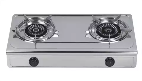 2 burner table gas stove0.4MM S/steel body NO Color#057 Dia 100+120 gloden iron cap + cast iron burnerEnamel pan supportAuto ignitonBody size: 690*385*60MM